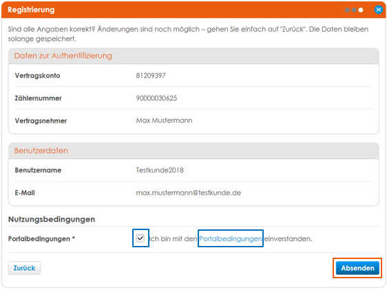 Bitte bestätigen Sie uns, dass Sie mit den Portalbedingungen einverstanden sind, indem Sie ein Häkchen setzen.