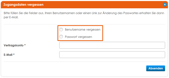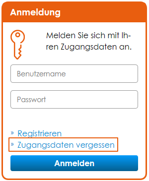 Sie haben Ihren Benutzernamen oder Ihr Passwort vergessen? Dann klicken Sie einfach auf „Zugangsdaten vergessen“.