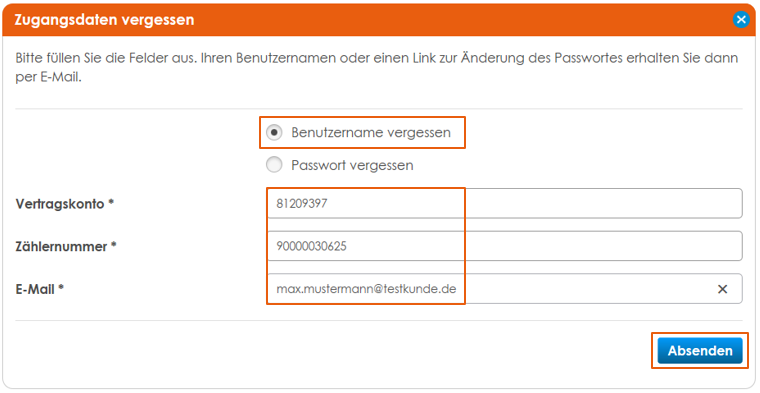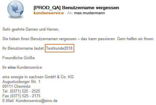 Dann erhalten Sie eine E-Mail mit Ihrem Benutzernamen.