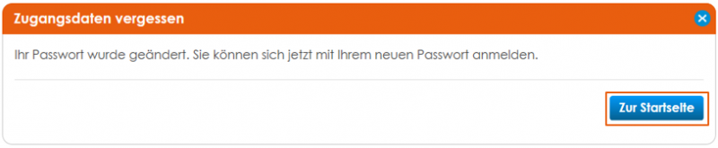Ihr Passwort wurde geändert. Melden Sie sich jetzt mit dem neuen Passwort an. Klicken Sie dafür auf „Startseite“.
