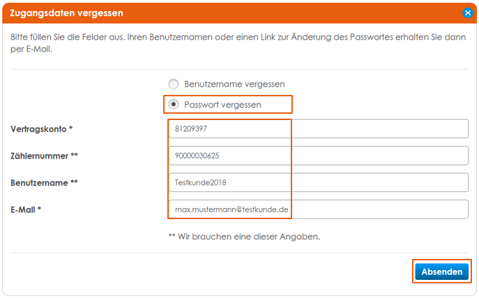 Sie wissen beides nicht mehr? Auch dann helfen wir Ihnen. Wählen Sie dafür bitte zuerst „Benutzername vergessen“. Wir senden Ihnen den Benutzernamen per E-Mail. Und danach wählen Sie „Passwort vergessen“.